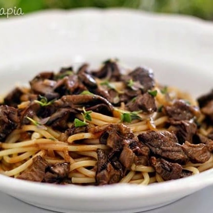 Espaguete, Iscas De Filé, Tomate Seco E Funghi