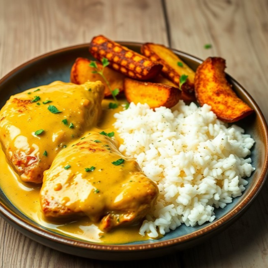 Filé De Frango, Acompanha Arroz E Batata Rustica