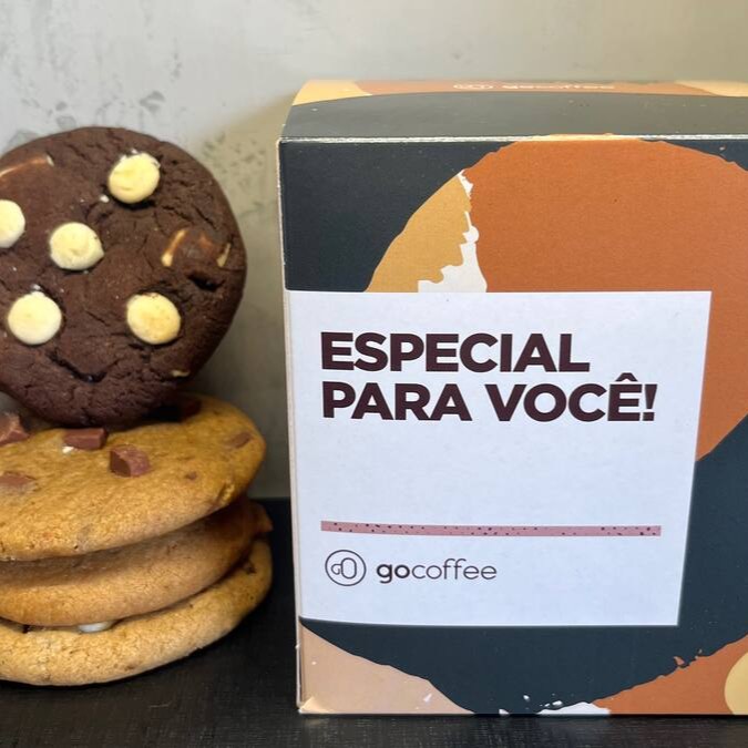Caixa para presente com 4 cookies sabores variados (50gr cada unidade)