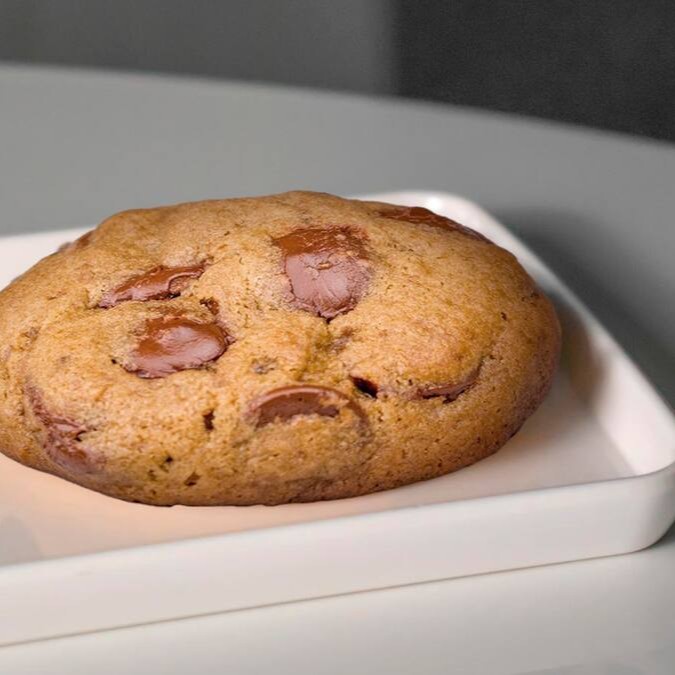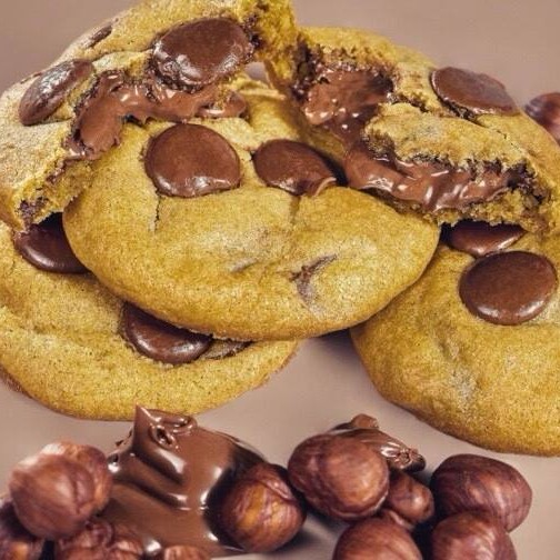 Cookie com massa de baunilha e o dobro do recheio de chocolate ao leite