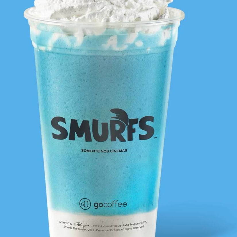 Venha se deliciar com Frappe de Bluberries, a bebida dos Smurfs… Chantilly + gelo+ base creme+ leite + xarope de bluberry + chantilly 480ml