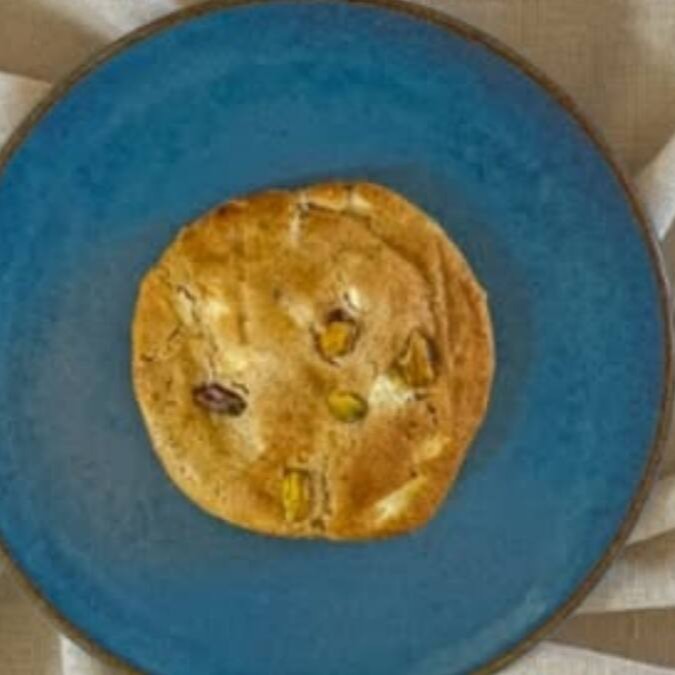 Cookie com pistache, gotas de chocolate branco e brigadeiro de pistache 80gr