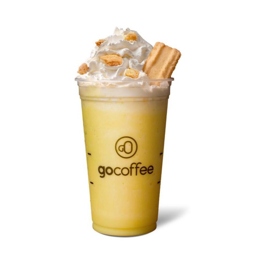 Delicioso Frappe de limão siciliano com biscoito amanteigado. Leite+ base creme+ xarope de torta de limão siciliano+ gelo+ chantilly + biscoito amanteigado. 480ml