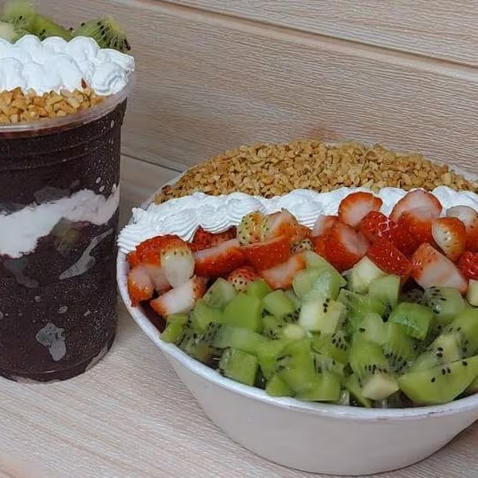 Creme de açaí batido até ficar bem cremoso, servido com crocante granola e uma fruta fresca à sua escolha separadamente. Perfeito para um lanche nutritivo e refrescante!