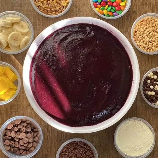 Creme de açaí saboroso com acréscimos para adicionar a escolha.