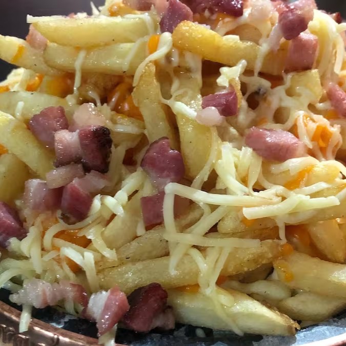 400g de batata frita com queijo e bacon