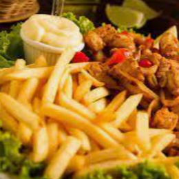 400g de filé de frango acebolado e batata frita