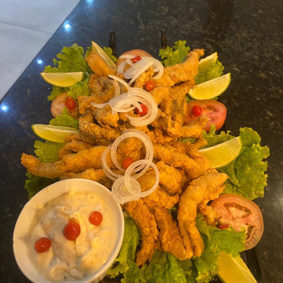 400g de tilápia empanada e frita,acompanha molho tartaro