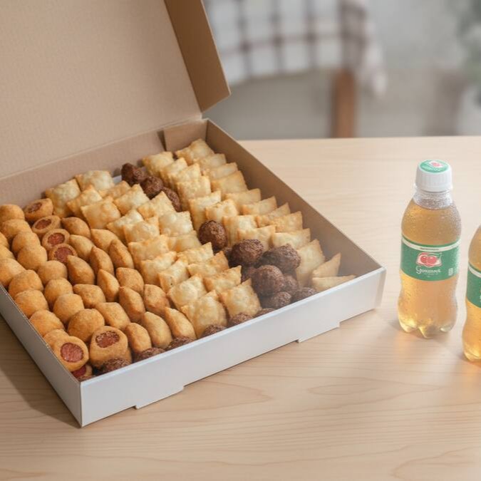Celebre em grande estilo com nosso combo de 30 salgados variados! Desfrute de uma seleção irresistível, que inclui coxinha de frango, bolinha de milho, kibe, medalhão de salsicha, bolinha de Presunto e Muçarela e Trouxinha de carne.