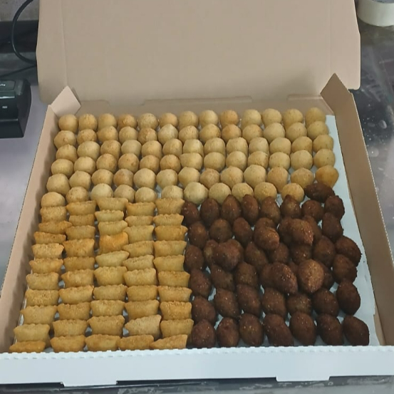 * Pode conter* Coxinha ,Trouxinha de milho com muçarela, trouxinha de carne, medalhão de salsicha e bolinha de Presunto e muçarela.