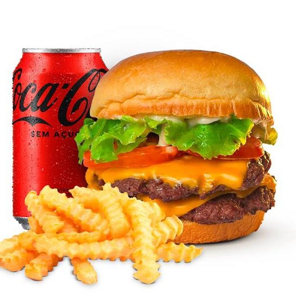 Pão de brioche, duplo suculento burger smash 70g, deliciosa maionese hakuna, duplo queijo cheddar fatiado, alface, tomate e cebola roxa.