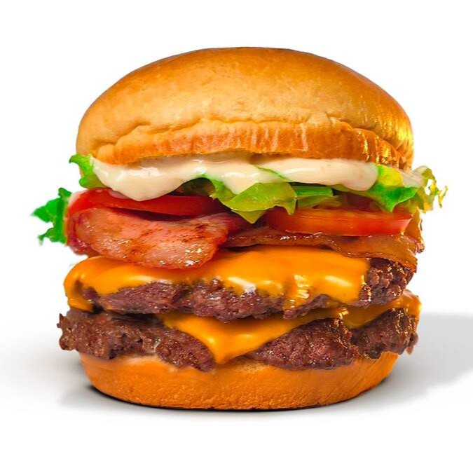 Pão de brioche, triplo suculento burger smash 70g, deliciosa maionese hakuna, triplo queijo cheddar fatiado, bacon, alface, tomate, cebola roxa.