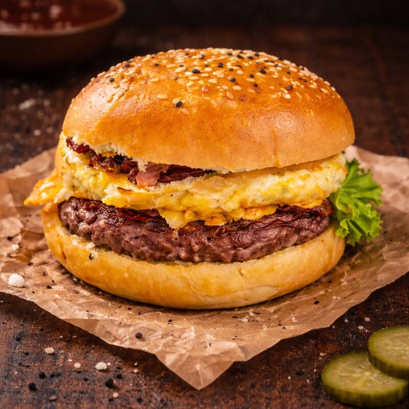 Pão de brioche com gergelin, carne blend artesanal , Molho Especial, abacaxi grelhado, alface, tomate, bacon selecionado e ovo.