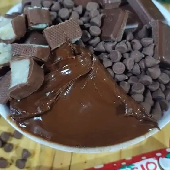 Cumbuca De 500 Ml Acai Leite Em Po Nutella Gotas De Chocolate Prestigio Chocolate Ao Leite