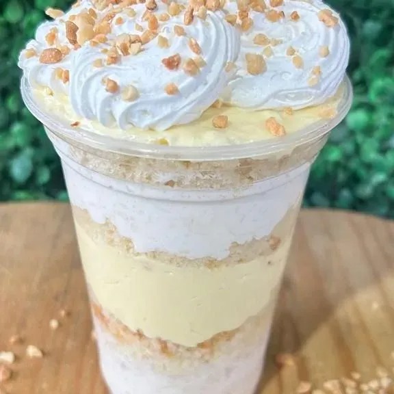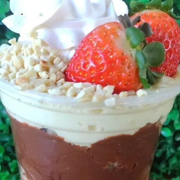 COPO 400 ML BOLO CAMADAS CREME NINHO CAMADAS DE GELEIA DE MORANGO CHANTILY AMENDOIM TRITURADO