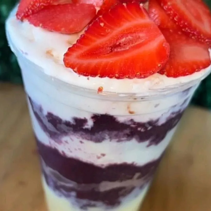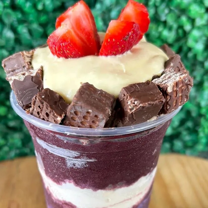 Açaí Em Camadas Com Bis E Morango( 4 Acompanhamentos)