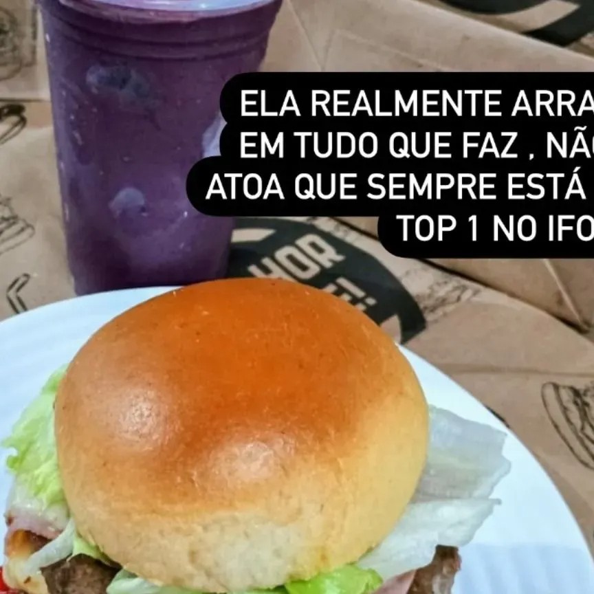 Pão de brioche 2 carnes de 120 hrs picanha Mussarela Presunto Bacon fatiado Salada Baconese Molhos + 1 vitamina de açaí