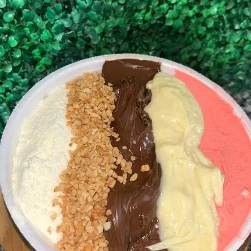 1 Marmita de 1 Kilo com Creme De Acai Uma Roleta Grande Nutella Morango Ovomaltine Bombons Creme De Morango Creme Ninho . 200 Ml De Cada Acréscimo