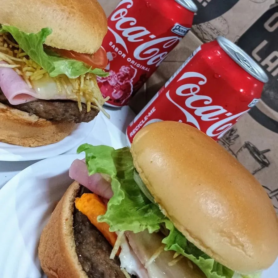 2 xtudo Pão de brioche 2 carnes de 120 grs picanha Mussarela Presunto Bacon fatiado Baconese Molhos Salada + 2 cocas