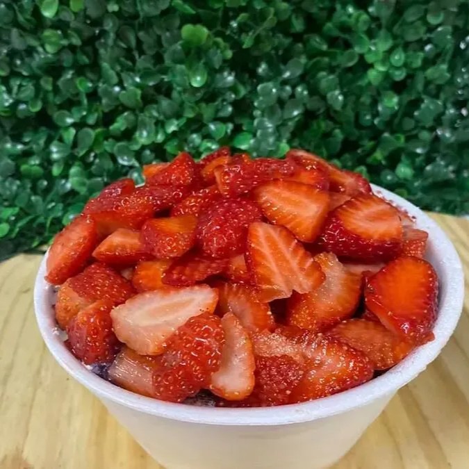 Copo De 500 Ml Acai Leite Em Po Calda De Morango ] Morangos Frescos