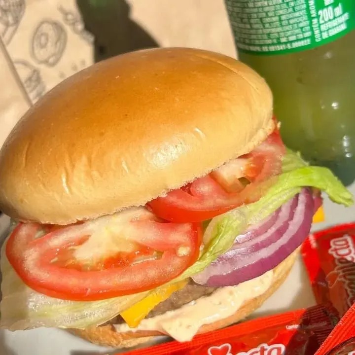 Pão de brioche 1 carne 120 grs sabor picanha Baconese Cebola Alface Tomate