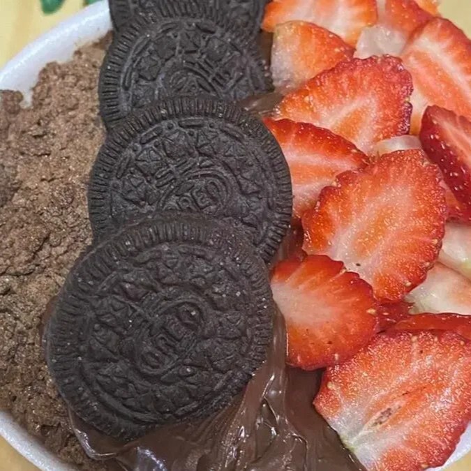 Creme de acai pote de 500 ml Leite em po Biscoito Oreo Ovomaltine Nutella Morangos frescos