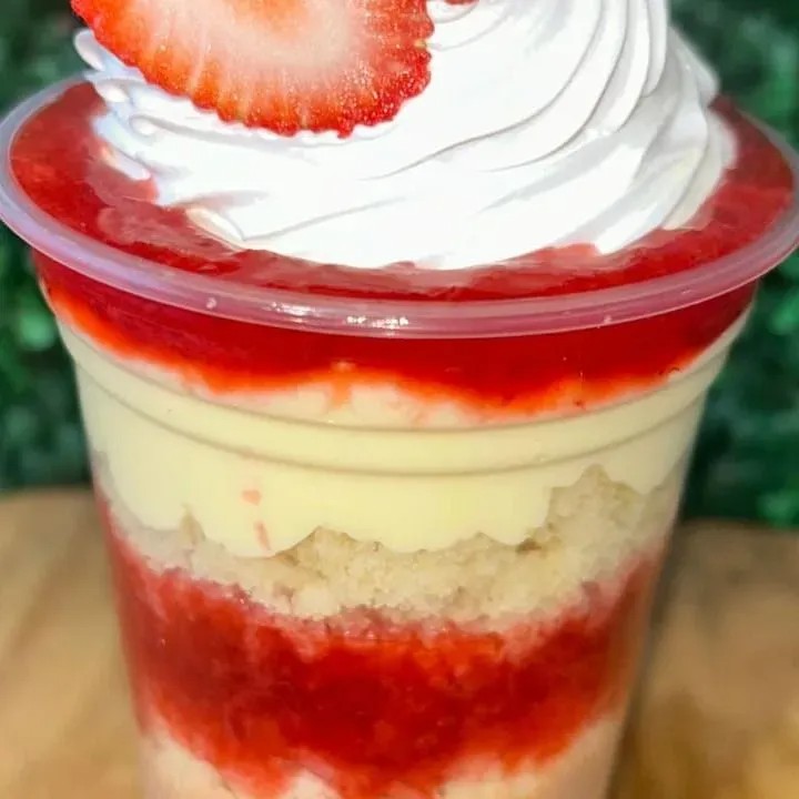COPO 400 ML BOLO RECHEIO DE CARAMELO GELEIA DE MORANGO CHANTILY MORNGO FRESCOS