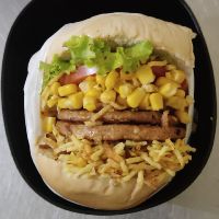 pão,carne,molho especial,presunto,mussarela,chedda,alface,tomate,milho,batata palha