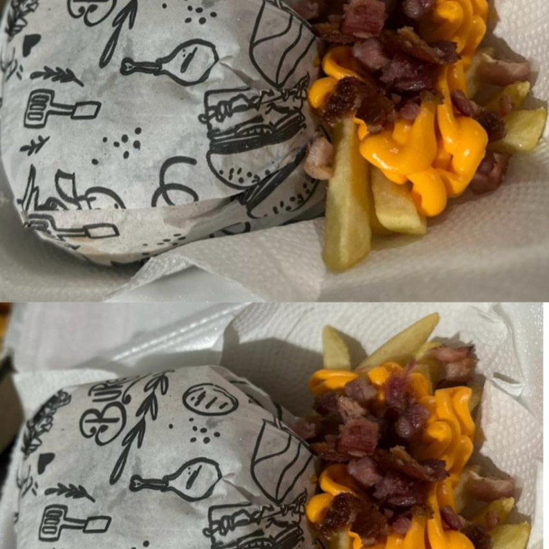 2 hamburguer , + porcãozinha de batata cheddar e bacon +2 refri 200ml . OBSERVAÇÃO ; AS BATATA PODEM CHEGAREM MURCHAS DEVIDO A EMBALAGEM FECHADA