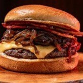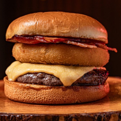 Pão de Brioche Tostado na Chapa com Manteiga, Burger de 100Gr, Queijo, Bacon, Cebola Caramelizada. Molho especial