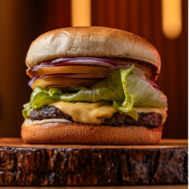 Pão de Brioche Tostado na Chapa Com Manteiga, Burger de 100Gr, Queijo, Alface, Tomate, Cebola Roxa, Molho especial