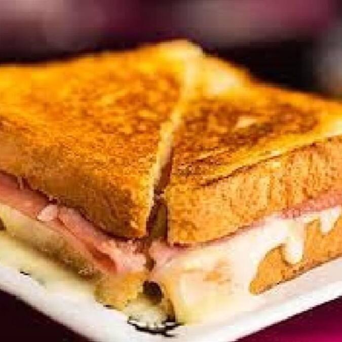 Pão de forma, presunto e queijo assada