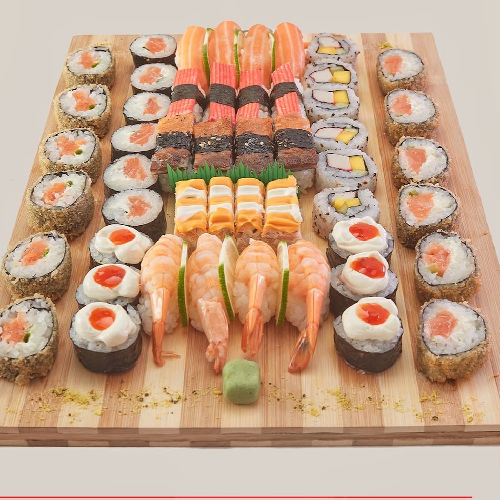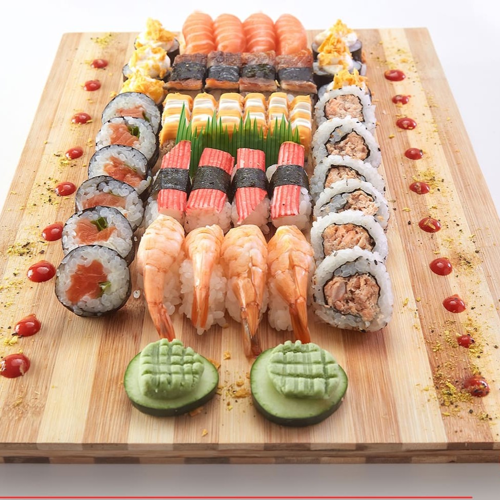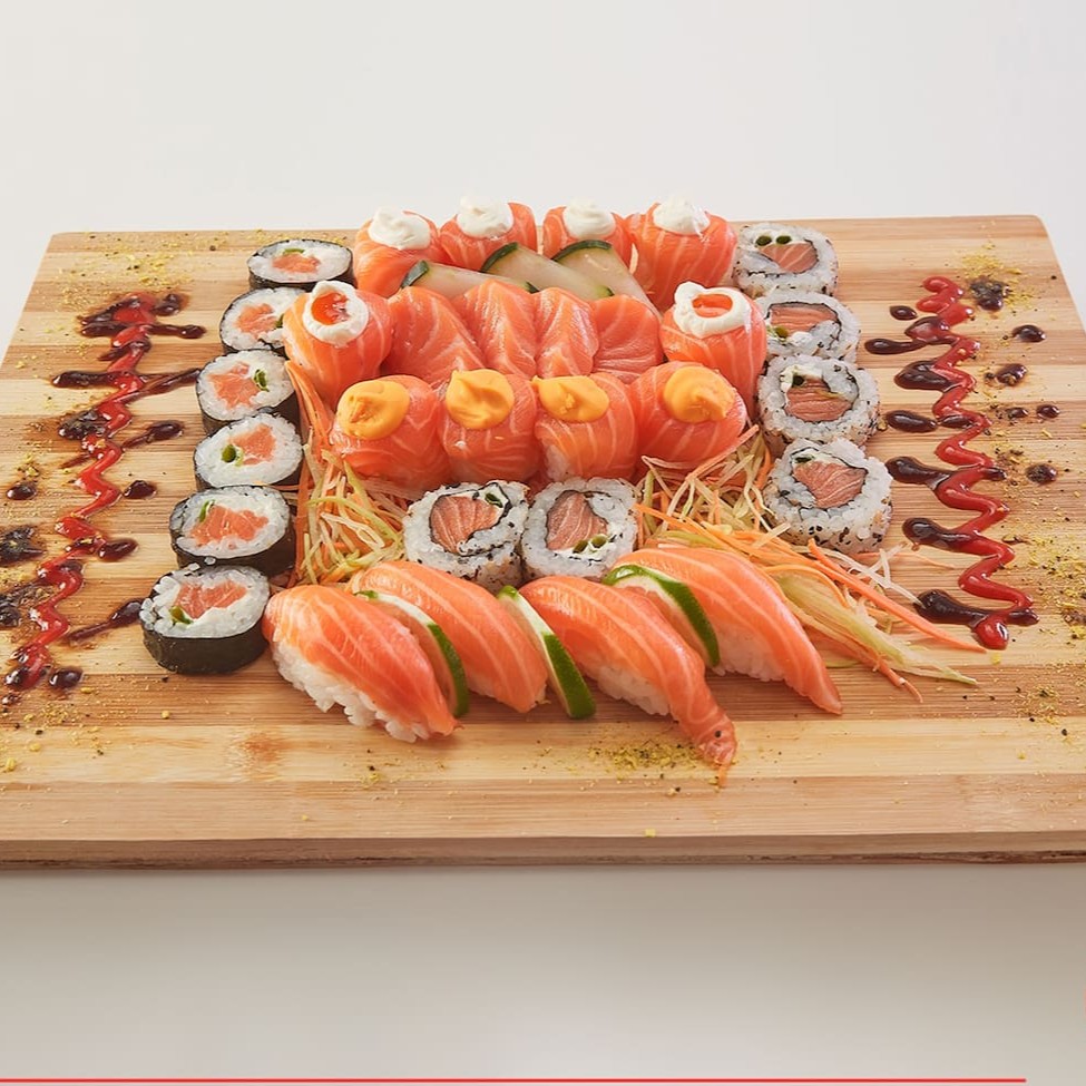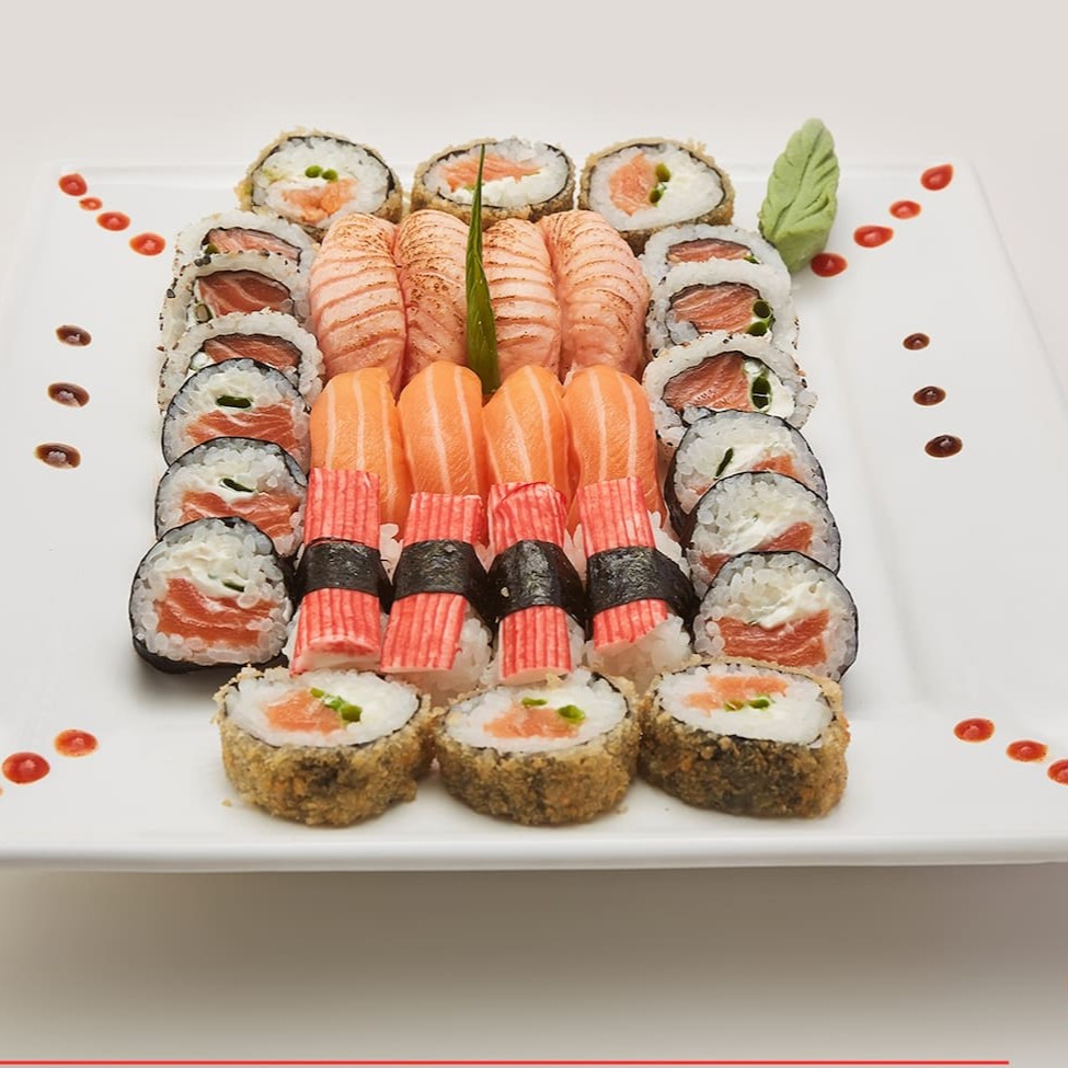 O 'Sataima' é uma seleção primorosa de 51 peças de sushi, meticulosamente preparadas. Composto por 4 Niguiris de Skin saborosos, 4 Niguiris de Kani suculentos, 4 Niguiris de Salmão fresco e 4 Niguiris de Camarão irresistíveis. Inclui ainda 5 Tortinhas crocantes, 6 Rolls da Califórnia vibrantes, 6 Makis com Geleia Picante inovadora, 6 Makis de Filadélfia cremosos e 12 deliciosos Hot Filadélfia. Por favor, note que o shoyu, teriyaki, porta-shoyu e hashi não estão incluídos e não fazemos modificações neste combo. Uma verdadeira festa para os amantes de sushi!