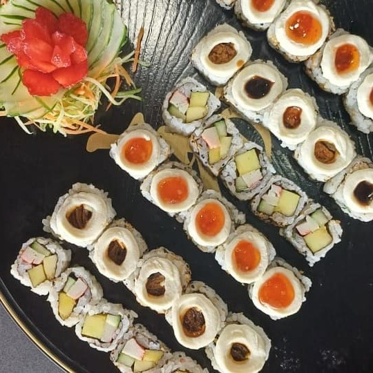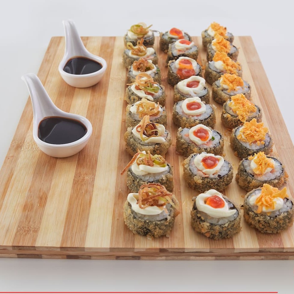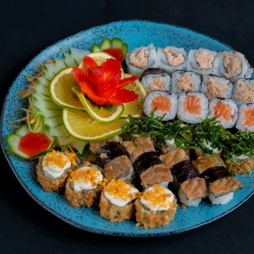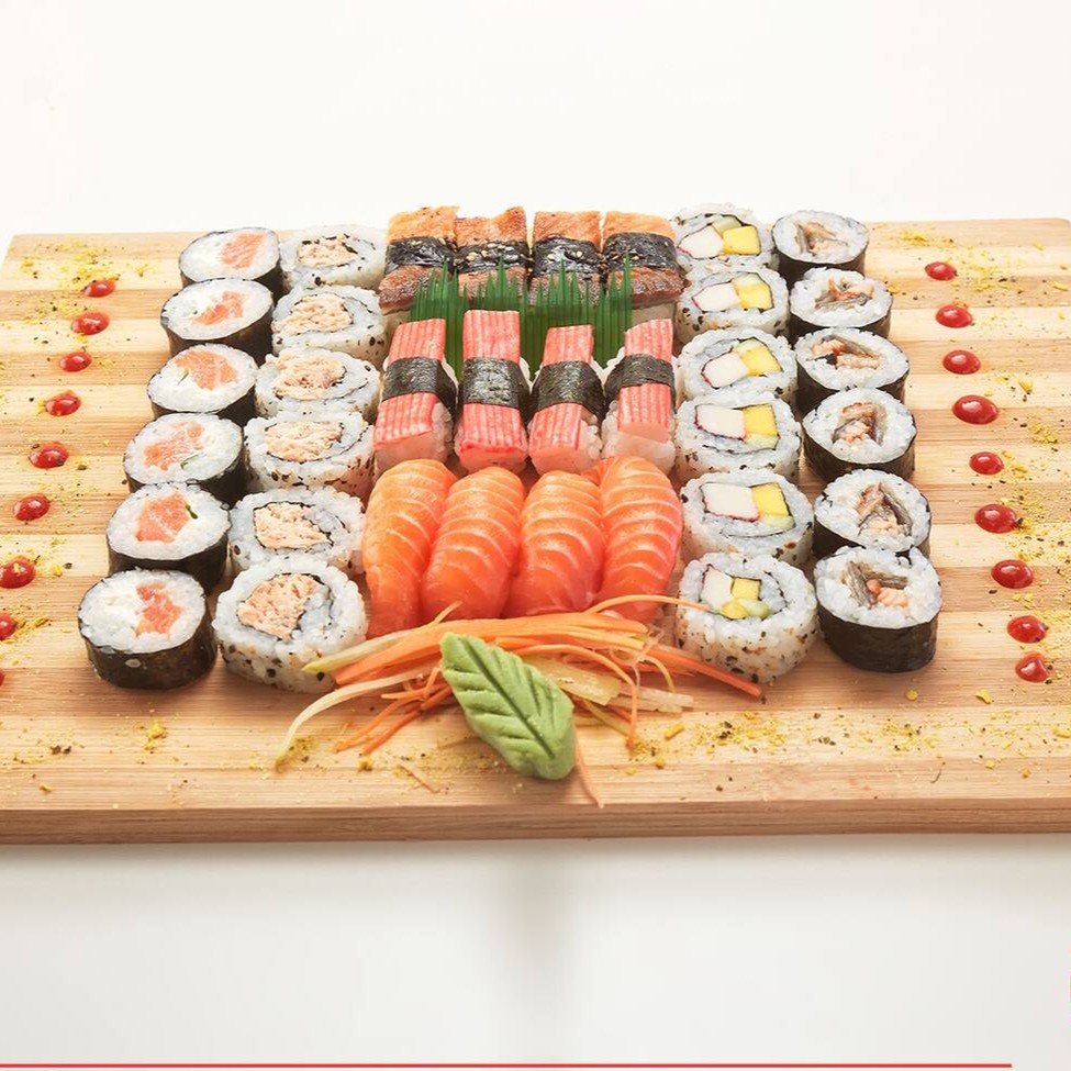 O 'Sataima' é uma seleção primorosa de 51 peças de sushi, meticulosamente preparadas. Composto por 4 Niguiris de Skin saborosos, 4 Niguiris de Kani suculentos, 4 Niguiris de Salmão fresco e 4 Niguiris de Camarão irresistíveis. Inclui ainda 5 Tortinhas crocantes, 6 Rolls da Califórnia vibrantes, 6 Makis com Geleia Picante inovadora, 6 Makis de Filadélfia cremosos e 12 deliciosos Hot Filadélfia. Por favor, note que o shoyu, teriyaki, porta-shoyu e hashi não estão incluídos e não fazemos modificações neste combo. Uma verdadeira festa para os amantes de sushi!