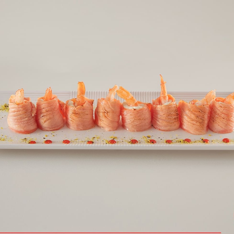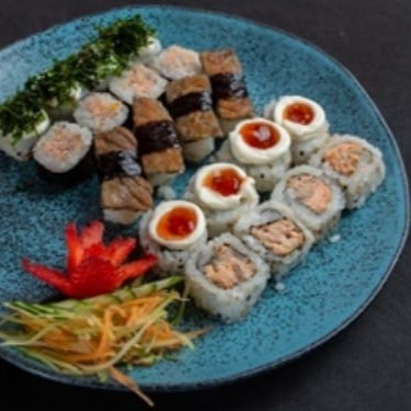 Este prato atrativo é composto por 8 unidades de camarão cuidadosamente cozidos até a perfeição, combinados harmoniosamente com um suave e cremoso cream cheese. Tudo isso meticulosamente envolvido em uma fatia de salmão fresco, sem a adição de arroz, destacando ainda mais os sabores ricos e distintos de cada ingrediente. Não acompanha shoyu, teriyaki, porta-shoyu e hashi. Obs: Não fazemos modificações no combo.
