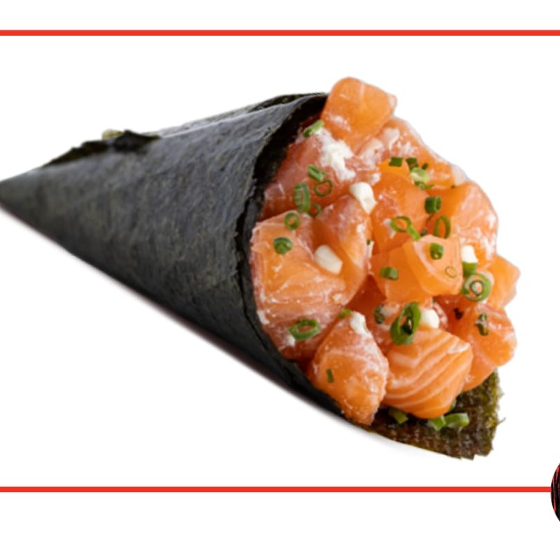 Com um peso aproximado de 250g, o 'Temaki Salmão Doritos' é uma criação culinária inovadora e ousada. Composto por arroz suavemente temperado, enrolado em uma folha de alga nori, o prato é realçado pelo sabor rico e textura sedosa do salmão fresco. O acréscimo de Doritos confere uma crocância inigualável, criando um contraponto perfeito com a cremosidade do cream cheese. Não acompanha shoyu, teriyaki, porta-shoyu e hashi. Obs: Não fazemos modificações no combo.