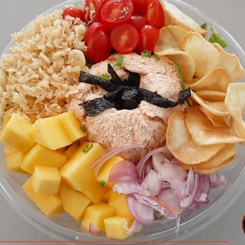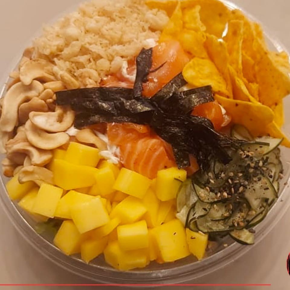 O 'Poke Takayama' é um prato esplêndido e vibrante. Consiste em uma base de arroz japonês, cuidadosamente coberta com um mix de saladas frescas e crocantes. A estrela do prato é o salmão grelhado suculento, que é complementado com a doçura de cebola roxa e a picância de cebolinha. O kani adiciona uma textura macia, enquanto o sunomono traz um toque ácido. Há também a inclusão de gergelim tostado, tomate grape suculento, um toque de shoyu cítrico e um crocante especial que adiciona uma camada extra de textura. O nori dá um toque marinho e a manga aporta uma doçura tropical. Este prato é uma verdadeira explosão de sabores e texturas. Não acompanha shoyu, teriyaki, porta-shoyu e hashi. Obs: Não fazemos modificações no combo.