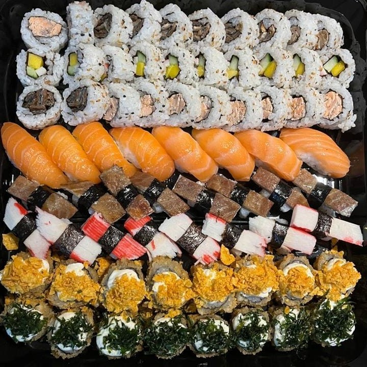 Baratíssimo 70 (70 peças) 10 Uramaki Salmão Grelhado 10 Uramaki Califórnia 10 Uramaki Skin 8 Niguiri Skin 8 Niguiri Salmão 8 niguiri kani 8 hot hool crisp couve 8 hot hool cream cheese e Doritos Não Acompanha Molhos e Descartáveis. (São vendidos à parte os molhos e descartáveis) #sushi#comidajaponesa#sashimi#niguiri#japa#temaki#hot##japonesa #chinesa #shoyo #salmão #camarão #suhi #yakisoba