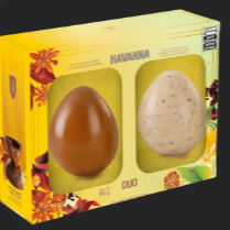 Duo Ovo Páscoa Havanna Chocolate ao leite com recheio doce de leite e Chocolate branco com limão e cookies 170g