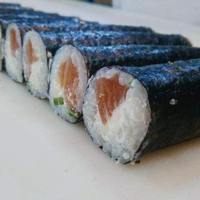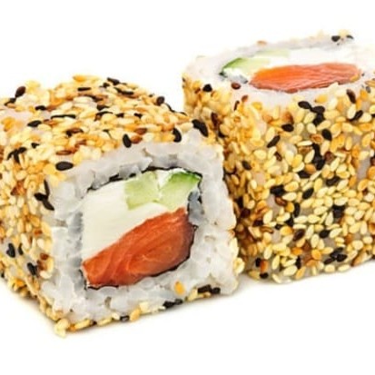 250g- cubos de salmão,cream cheese,cebolinha e gergelim.