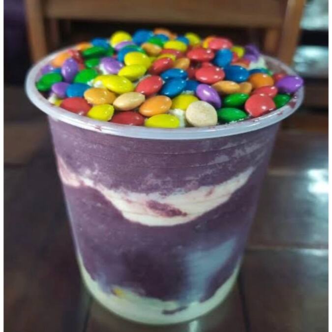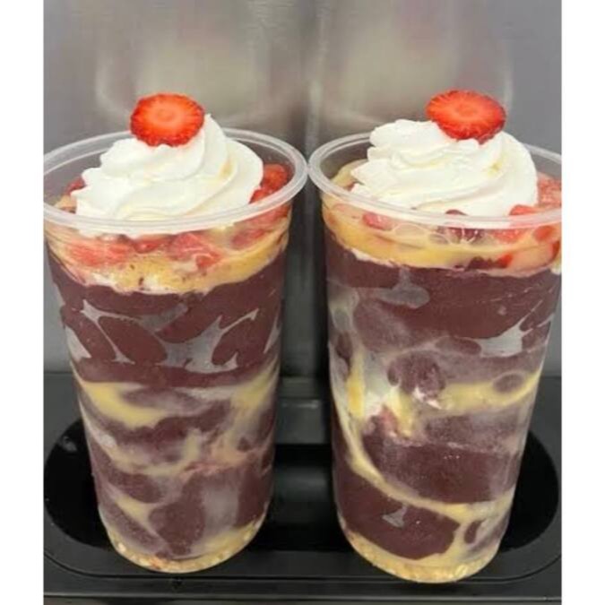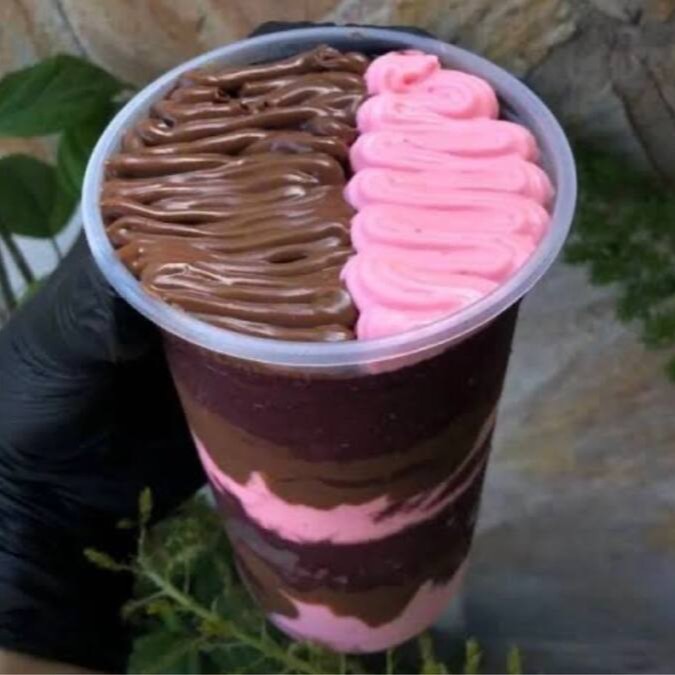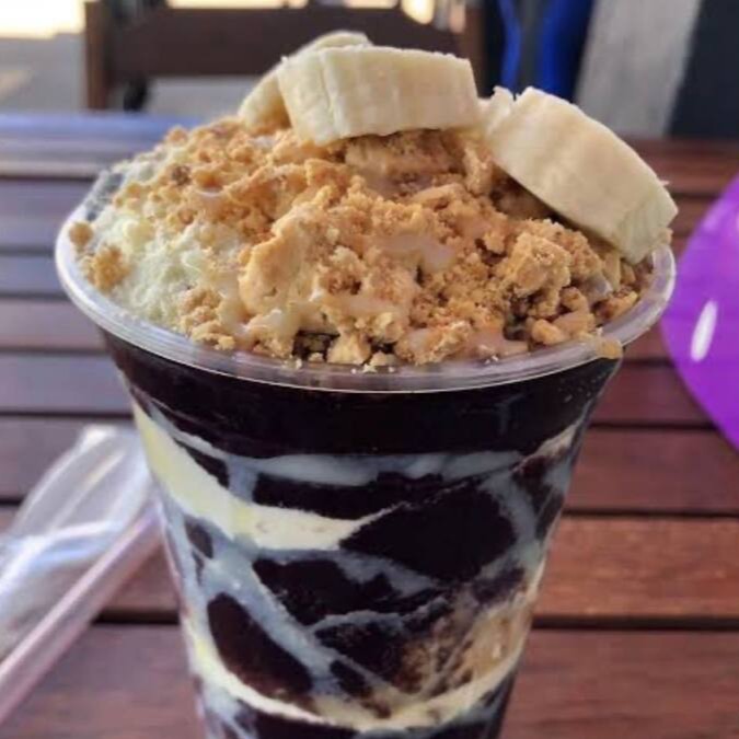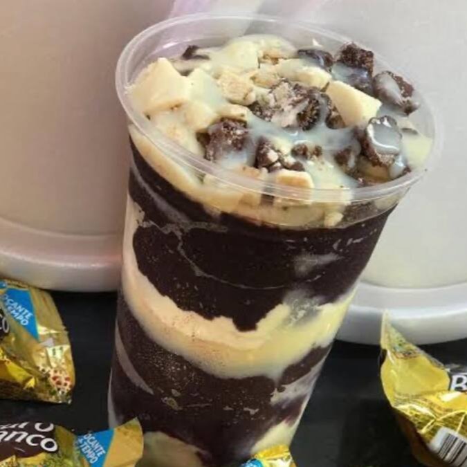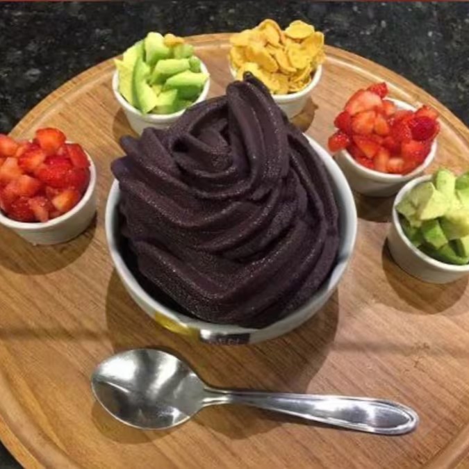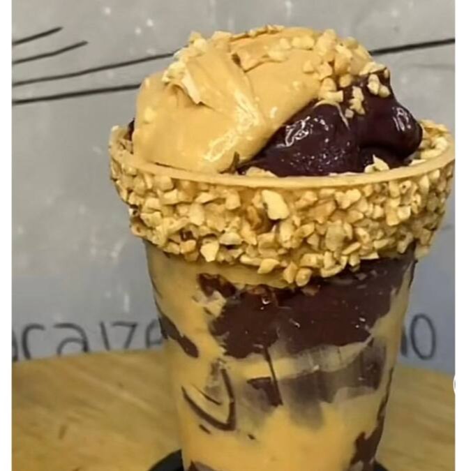 Creme de açaí gourmet, acompanhado por camadas de: