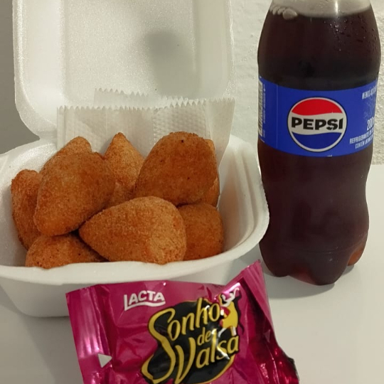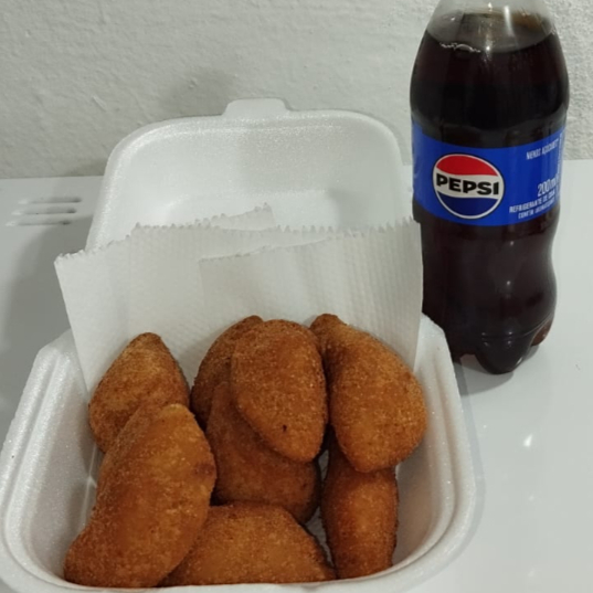 Esse combo é perfeito pra você, são 10 mini coxinhas de frango , com massa artesanal e super recheadas, são fritas na hora do pedido, e para compor essa delicisa você leva 1 pepsi e 1 sonho de valsa, tudo feito com carinho para te dar a melhor experiência, peça agora.