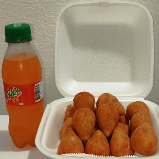 Promoção 15 Mini salgadinhos fritos na hora (coxinha de frango) feitas com massa artesanal + 1 Sukita laranja de 200 ml bem geladinha. Peça já