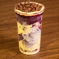 Açai, mousse de maracuja, leite em pó e gotas de chocolate