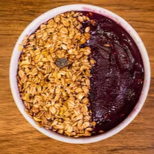 Delicioso açai, creme de pistache leite em po e castanha de amendoim