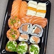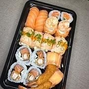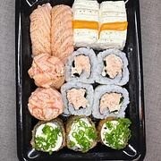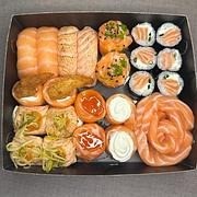 Descubra nosso irresistível combo com peças tradicionais e premium: 2 niguiris de salmão, 2 niguiris flambados, 2 tortinhas, 5 hossomakis, 6 uramakis variados, 2 sashimis e 4 hots. Acompanha 2 hashis, 4 tarês e 3 shoyos. Os recheios dos hots podem variar, caso deseje algum recheio específico, adicione na observação.