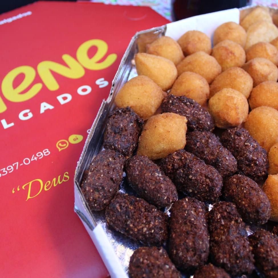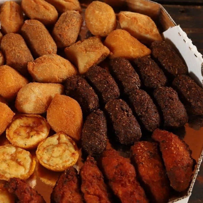 Escolha 50 unidades de salgados dos 13 tipos que a Irlene Salgados oferece. Salgados quentinhos e saborosos, todos fritos na hora da entrega!