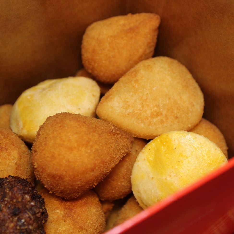 A Irlene se preocupou com os vegetarianos e trouxe 5 opções de salgados vegetarianos deliciosos e fritos com óleo de soja.
