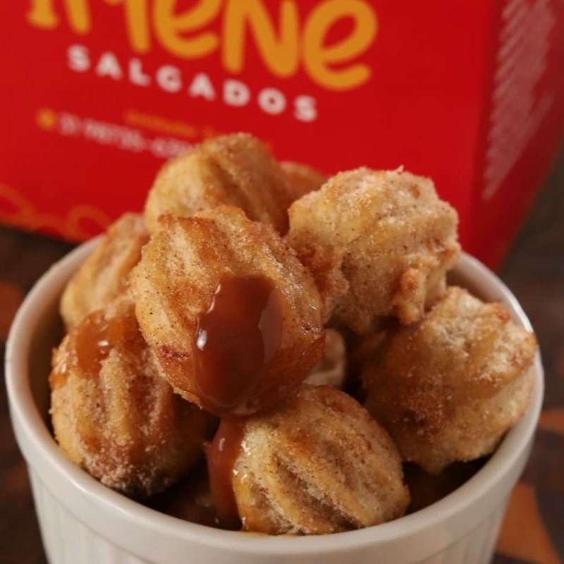 Porção de 12 unidades de churros recheados com doce de leite, receita caseira e secreta da dona irlene