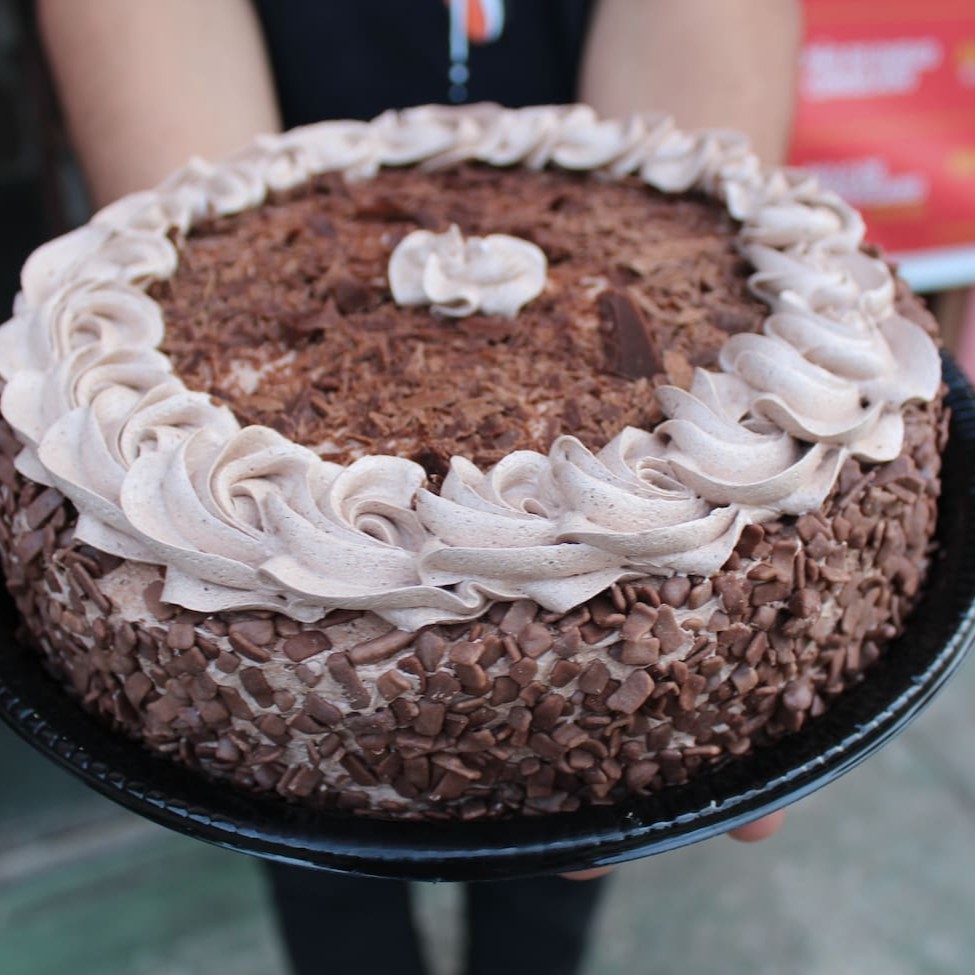 Delicioso bolo de aniversário com 1,200kg. Consulte sabores disponíveis. (Serve até 12 pessoas)